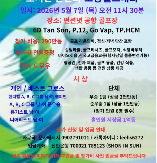 호찌민 한인회, 제24회 초청 골프대회 5월 7일 개최