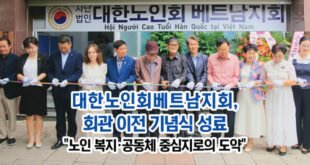 대한노인회 베트남지회(회장 주옥자)가 2025년 7월 18일, 호치민시 12군 타이안 아파트 2동 012호로 새 회관을 확장, 이전하며 기념행사를 성황리에 개최했다. 이번 행사는 한국 총영사관, 한인회, 지역 사회 단체 및 다수의 회원들이 참석한 가운데 진행됐으며, 노인회가 보다 넓고 개선된 공간으로 거듭나며 새로운 도약을 알리는 계기가 됐다. 행사는 리본 커팅식을 시작으로 본격적인 막을 …