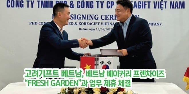 한국 판촉물 전문 업체 고려기프트는 지난 6월 10일 베트남 베이커리 프렌차이즈 “FRESH GARDEN”을 운영하고 있는 Công ty TNHH PHD 하노이 본사에서 업무 제휴식을 가졌다. 금번 협약을 통해 고려기프트는 음료수, 아이스크림, 전통 떡, 각종 k-culture fancy 제품 등 한국의 우수한 제품들을 베트남 전국에 약 100여개 매장을 갖춘 FRESH GARDEN을 통하여 판매하며 …