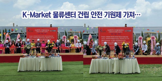 K-Market은 베트남 호치민 복합물류센터 신축공사의 성공적인 추진과 무사고 준공을 위해 지난 6월14일 동나이 연짝 공단에 위치한 신축공사 현장에서 안전기원제를 개최했다. 이날 인전기원제에는 K-Market 고 상구회장을 비롯한 임직원들과 시공사 G-Tech건설 이 순혁회장 및 시공 관계사와 지역 유지들이 참석했다. 호치민 복합물류센터는 NHON TRACH TEXTILE IP HIEP PHUOC내 대지 24,787㎡에 상온, 냉동, 냉장창고를 …