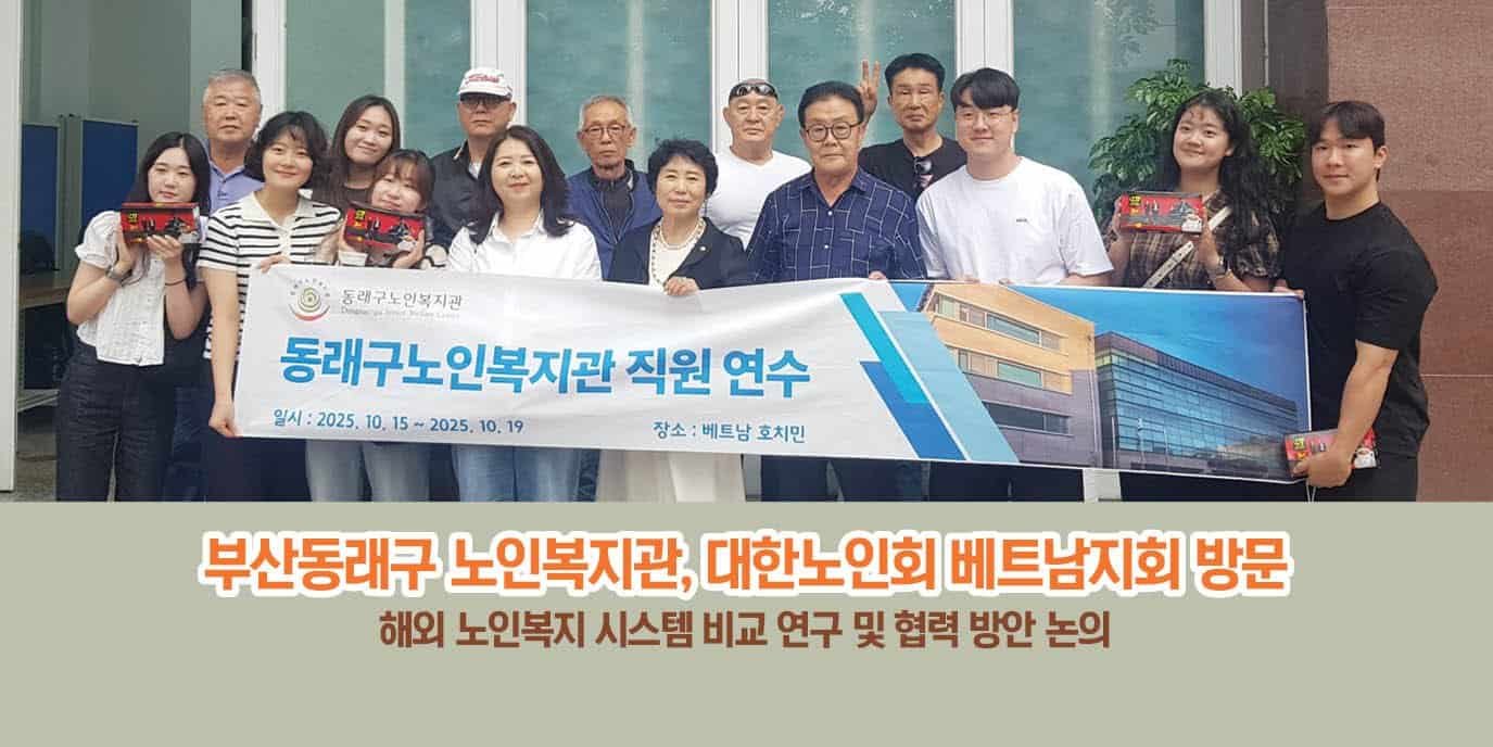 2025년 10월 17일, 부산동래구 노인복지관 정지희 관장과 복지사 7명으로 구성된 방문단이 대한노인회 베트남지회를 방문했다. 주옥자 회장이 방문단을 맞아 양측 기관의 운영 현황과 향후 협력 방안을 논의했다. 이번 방문은 베트남 내 독거노인 및 저소득층 노인 지원사업 현황을 조사하고, 한국 지역 복지사업에 적용 가능한 모델을 탐색하기 위해 진행됐다. 방문단은 해외 한인 사회의 …