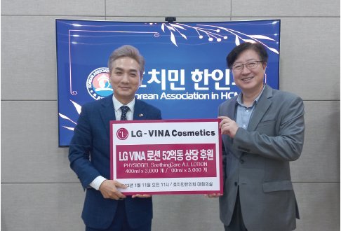LG VINA 코스메틱은 01월 11일 오전11시 호치민한인회 회의실에서 차담회를 갖고 호치민한인회에 52억동 상당(400ml 3,000개, 100ml 3,000개)의 피지오겔 로션을 기증하였다. 홍승표 상근부회장은 공무 중인 손인선 베트남한인회총연합회 겸 호치민한인회 회장을 대신하여 물품을 수령하면서 “좋은 곳에 소중히 잘 사용하겠습니다.” 라며 감사의 말씀을 전하였다. LG VINA 코스메틱 김경효 생활용품사업부 본부장은 호치민한인회를 통하면 폭넓게 …