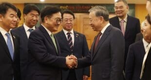 -럼 서기장 “한국 기업 우려 우선 검토…韓메시지 北에 전달” 베트남을 방문 중인 우원식 국회의장은 21일 또 럼 베트남 공산당 서기장과 만나 경제 협력 강화와 한반도 평화 등에 대해 의견을 나눴다고 연합뉴스가 보도했다. 우 의장은 이날 하노이 공산당 중앙당사에서 럼 서기장에게 “베트남이 세운 ‘2045년 선진국 달성’ 목표 추진 과정에 1만여개 베트남 …