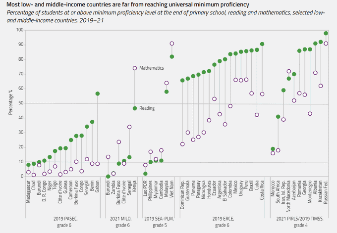 -최소 숙련도 달성한 아동 비율 ‘읽기’ 91%, ‘수학’ 81% 최근 발간한 유네스코 보고서에 따르면 베트남 어린이들의 읽기 및 수학 실력이 모든 저소득 및 중저소득 국가 중 가장 높은 것으로 나타났다고 Vnexpress지가 4일 보도했다. 2023 글로벌 교육 모니터링 보고서에 따르면 31개 저소득 및 중저소득 국가 중 베트남만이 초등학교 졸업 시 읽기 및 수학 …