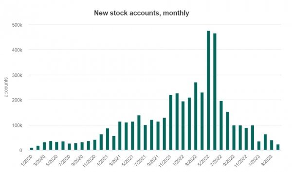 올들어 베트남 증시가 호재거리 없이 1000~1100대를 횡보하면서 증권계좌 개설도 지난 3년중 최저 수준으로 감소했다고 인사이드비나지가 12일 보도했다. 베트남증권예탁원에 따르면 4월 신규 증권계좌는 2만2740개로 2020년 3월 이후 최저치를 기록했다. 신규 증권계좌는 증시 활황 기던 지난해 5월 역대 최대인 47만6711개에서 두 달을 제외하고 계속 감소했다. 1~4월 누적 증권계좌 개설도 16만2764개로 작년 5월 한달치의 절반에도 …