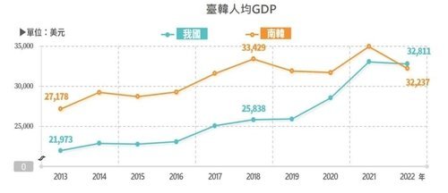 – 18년 만에 한국 추월 지난 해 대만의 1인당 국내총생산(GDP)이 18년 만에 처음으로 한국을 앞질렀다고 대만 중앙통신사가 28일 보도했다고 연합뉴스가 같은날 보도했다. 보도에 따르면 대만 경제부 통계처는 이날 “작년 대만의 1인당 GDP는 3만2천811달러(약 4천390만원)로, 한국의 3만2천237달러(약 4천313만원)보다 많았다”며 “대만의 1인당 GDP가 한국을 앞선 것은 2004년 이후 처음”이라고 밝혔다. 통계처는 “대만과 한국은 …