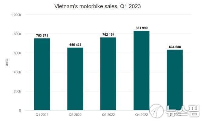 베트남에서 오토바이가 1분당 5대씩 팔리고 있는 것으로 조사됐다고 26일 뉴스핌지가 Vnexpress지 기사를 인용하여 보도했다. 26일 베트남 오토바이 제조업 협회(VAMM)에 따르면 올 들어 지난 3월까지 3개월간 베트남에서는 63만4000여 대의 오토바이가 판매됐다. 자동차 판매량의 7.3배로, 1분에 평균 5대가 거래된 셈이다. 다만 이는 전년 같은 기간보다 15.8%(11만9000여 대) 감소한 수치다. 시장 점유율이 80%에 …