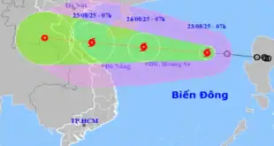 -25일 정오 탄호아-후에 지역 직격 예상…최대풍속 130㎞/h, 폭우 경보 남중국해(베트남명: 동해) 해상에 발생한 열대저기압이 23일 오전 태풍 ‘카지키(Kajiki)’로 발달해 25일 정오 탄호아(Thanh Hoa)-후에(Hue) 지역에 상륙할 것으로 예상된다고 베트남 국가수문기상예보센터를 인용하여 Vnexpress지가 23일 보도했다. 기상청에 따르면 23일 오전 7시 현재 태풍은 황사군도(Hoang Sa) 동북쪽 약 480㎞ 해상에서 최대풍속 74㎞/h(8등급), 돌풍 시 …