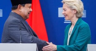 우르줄라 폰데어라이엔 유럽연합(EU) 집행위원장과 프라보워 수비안토 인도네시아 대통령이 13일(현지시간) 자유무역협정(FTA) 진전을 위한 정치적 합의에 도달했다고 연합뉴스가 14일 보도했다. AFP 통신에 따르면 폰데어라이엔 위원장은 이날 벨기에 브뤼셀에서 열린 공동 기자회견에서 “야심 찬 FTA에 대한 정치적 합의에 도달했다는 점을 기쁘게 발표한다”고 말했다. 그는 “경제 불확실성과 지정학적 변동성이 만나는 때 우리와 같은 파트너들은 …