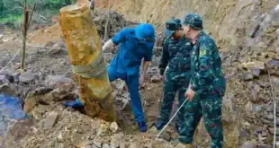 -응에안성 주민이 정원 정리 중 발견…지하 3.5m 매장된 MK83 폭탄 중부 응에안성(Nghe An Province)에서 발견된 500kg 규모의 전쟁 시대 폭탄이 안전하게 폭파 처리됐다고 Vnexpress지가 7일 보도했다. 6월 29일 응에안성의 한 주민이 정원을 정리하던 중 지하 3.5m에 매장된 폭탄을 발견해 즉시 당국에 신고했다. 출동한 코뮌 군사령부와 1지역-반안방위사령부(Area 1 – Van An …