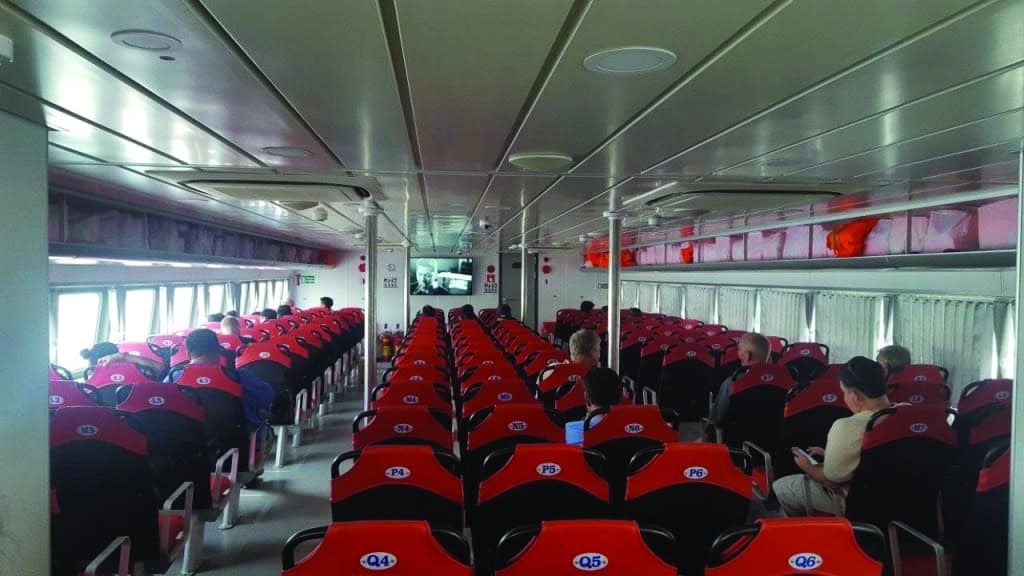 페리 내부는 1층으로만 구성되어 있었지만 넓었다. 실내 좌석이 많아서 주말임에도 널찍하게 앉을 수 있었다. 외국인은 나를 포함해 2명뿐이었고, 한국인은 혼자였다. 110V 전원까지 있어서 스마트폰을 충전하며 여유롭게 갈 수 있었다. 출발하자 사이공 강 근처의 유람선들이 보였다. 사이공 강을 따라 내려가며 바라본 호찌민의 스카이라인이 점점 작아졌다. 도시의 고층빌딩들이 사라지고 야자수와 망그로브 숲이 그 자리를 대신했다. 페리가 강 하구를 지나 바다로 나가자 완전히 다른 세상이 펼쳐졌다. 먼 바다의 먼푸른 물결과 수평선이 눈앞에 펼쳐지니 가슴이 탁 트였다. 이런 경험은 버스로는 절대 불가능했다.