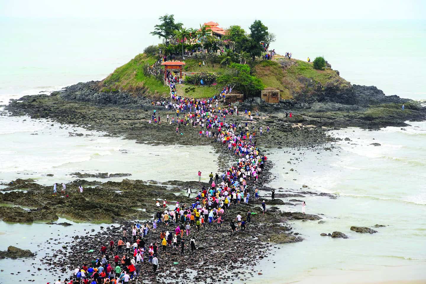 해가 기울기 시작할 무렵, 바이사우 해변 끝에 있는 혼바(Hòn Bà) 섬으로 향했다. 누이노(Núi Nhỏ) 산 기슭에 위치한 이 작은 섬의 신비는 썰물 때만 나타나는 바위길에 있었다. 만조 때는 배를 타고 가야 하지만, 다행히 썰물 시간이라 걸어갈 수 있었다. 바위길을 따라 걸어가는 경험은 마치 모세의 기적을 체험하는 듯했다. 섬에 있는 작은 사원에서는 지역 주민들이 기도를 올리고 있었다. 프랑스 군인과 관련된 전설을 간직한 이곳에서 바라본 일몰은 장관이었다. 주황빛으로 물든 하늘과 바다, 그리고 멀리 보이는 붕따우 시내의 불빛들이 환상적이었다.