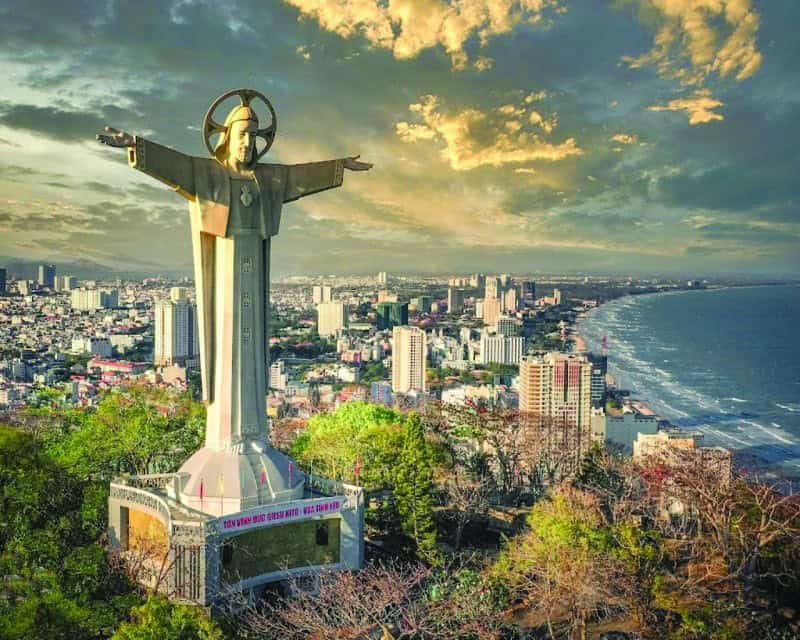 둘째 날은 붕따우의 상징인 그리스도상으로 시작했다. 누이노 산 정상에 우뚝 선 이 32m 높이의 동상은 1994년 공개된 이후 지역 가톨릭 공동체의 신앙 중심지가 되었다. 동상 내부의 133개 나선형 계단을 오르는 것은 마치 수도자의 수행과 같았다. 100명을 수용할 수 있다는 동상 내부에서 바라본 붕따우의 파노라마는 그 고생을 충분히 보상해 줬다. 발아래 펼쳐진 20km 해안선과 도시 전체, 그리고 멀리 호찌민 방향의 수평선까지. 이 높이에서 보니 붕따우가 정말 바다로 돌출된 반도라는 것을 실감할 수 있었다. 어제 타고 온 페리가 지나온 사이공 강 하구도 선명하게 보였다.