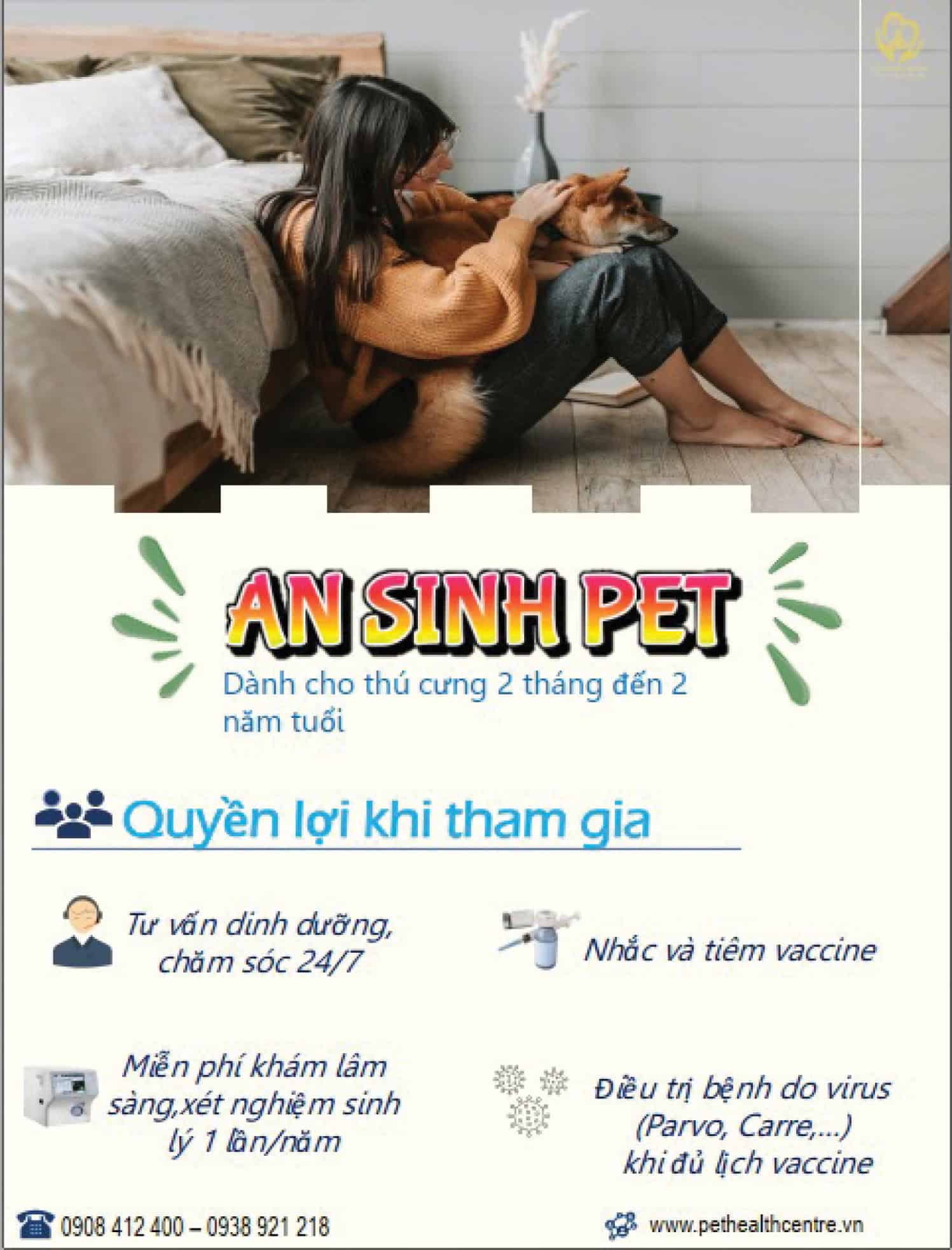 2개월에서~24개월 반려 견 혹은 묘에게 종합건강검진, 백신, 그리고 바이러스성 질병감염시 백신접종 유무에 따라 약 50%정도의 치료비를 감면해주는 패키지다. 본 프로그램은 나이에 따라 An Sinh에서 더 자라게 되면 Bao an (6개월~10살)으로 승급이 가능하며, 더 많은 서비스가 필요하다면 An Phuc 패키지로의 선택이 가능하다