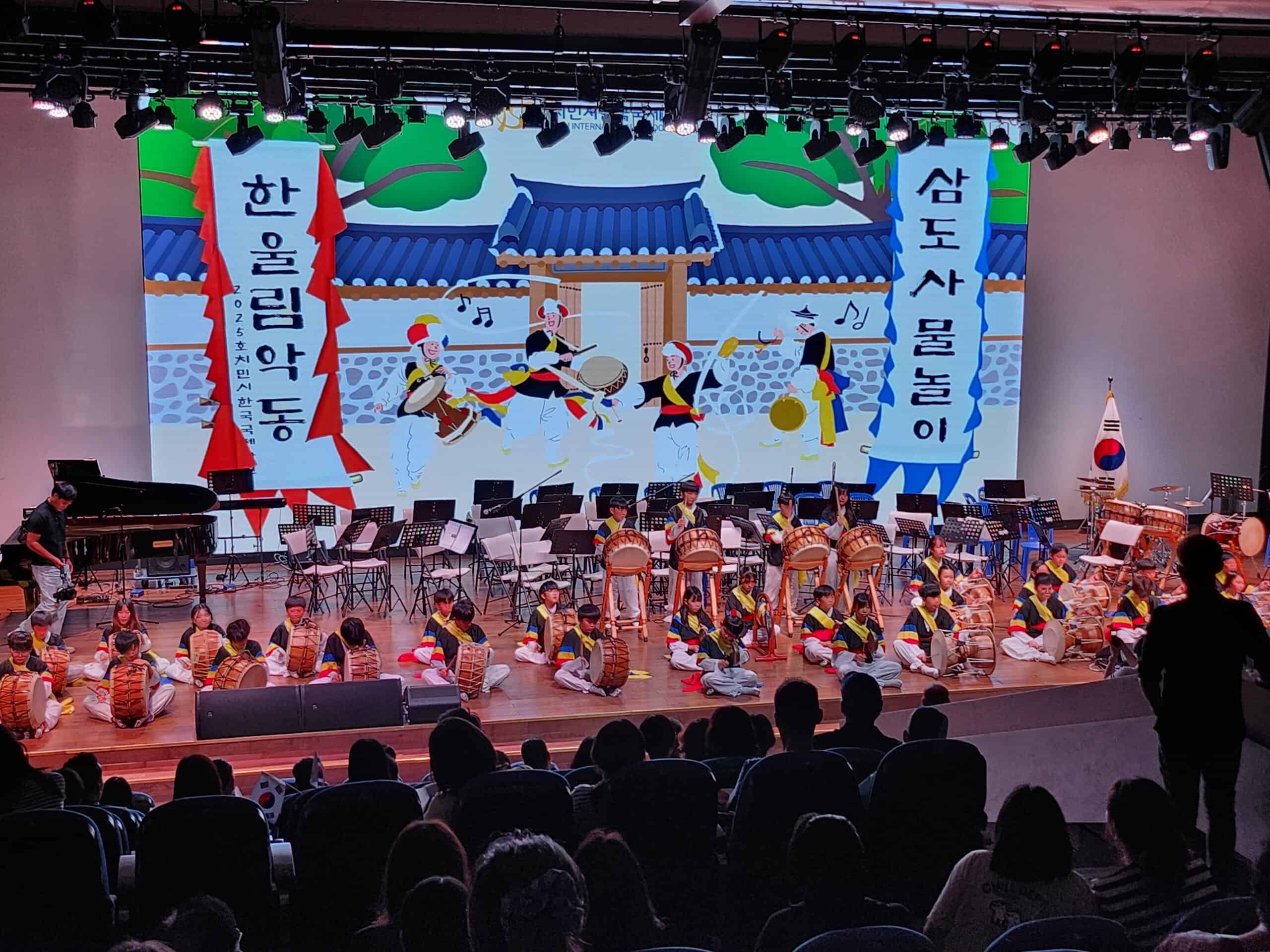 기념식 후에는 다채로운 축하 공연이 펼쳐졌다. 한국국제학교 초등부 학생들이 선보인 사물놀이는 힘찬 북소리와 징, 꽹과리, 장구의 울림으로 장내를 뜨겁게 달궜다. 한국국제학교 교향악단의 앙상블 연주도 이어져 관객들에게 장중하면서도 세련된 무대를 선사했다.