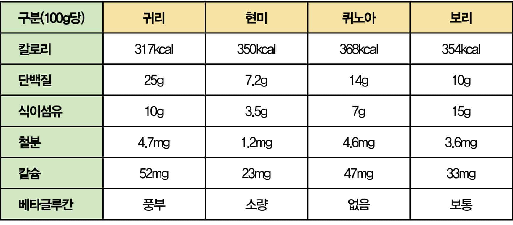 영양 성분 비교표