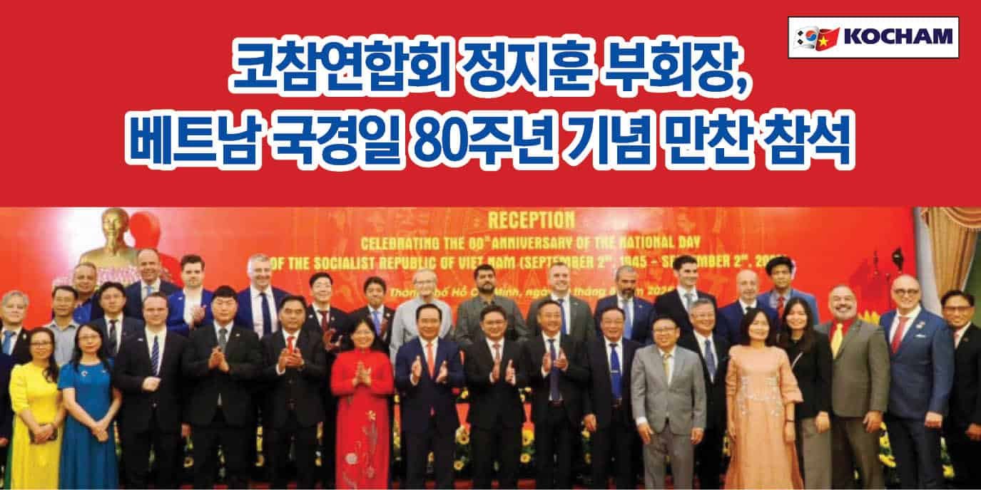 베트남한인상공인연합회(회장 김년호, 이하 코참연합회)는 정지훈 부회장(대외협력위원장)이 8월 19일 호치민시 통일궁에서 열린 베트남 국경일 80주년 기념 공식 환영 만찬에 참석했다고 밝혔다. 이번 만찬은 호치민시가 주최한 국가적 행사로, 국내외 주요 인사 300여 명이 한자리에 모였다.
