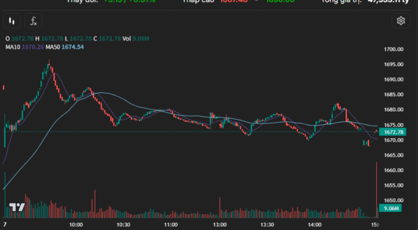 호찌민증시(HoSE) 지표인 VN지수는 27일 전거래일 대비 5.15포인트(0.31%) 오른 1672.78로 마감했다. 이날 1678.54로 갭상승 출발한 지수는 급등세를 나타내며 곧바로 1696.6까지 오르는 강세를 보였으나, 이후 차익 실현 매물이 출회되면서 계단식 하락이 이어졌다.