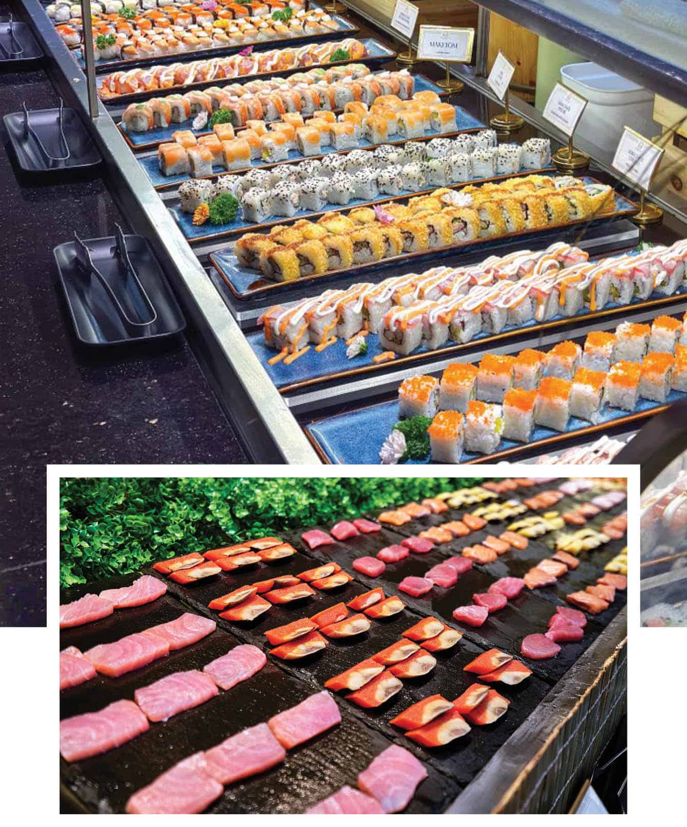 특히 여름철 높은 온도에서 장시간 노출된 사시미는 식감이 떨어지고, 생선 특유의 비린내가 날 수 있어 주의가 필요하다. 스시의 경우도 마찬가지다. 밥의 온도와 생선의 온도 차이로 인해 전체적인 조화가 떨어지며, 와사비와 간장의 품질도 개선이 필요한 수준이다. 특히 간장이 지나치게 짜고 인공적인 맛이 강해 섬세한 생선의 맛을 해치는 경우가 많다.