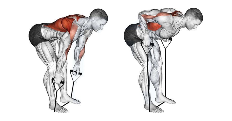 첫째, 팔꿈치 굽히기는 상완이두근을 강화한다. 의자에 앉아 밴드 중앙을 발로 밟고, 양 끝을 잡은 뒤 팔꿈치를 천천히 굽혀 올린다. 이때 어깨가 올라가거나 팔꿈치가 벌어지지 않도록 주의한다.