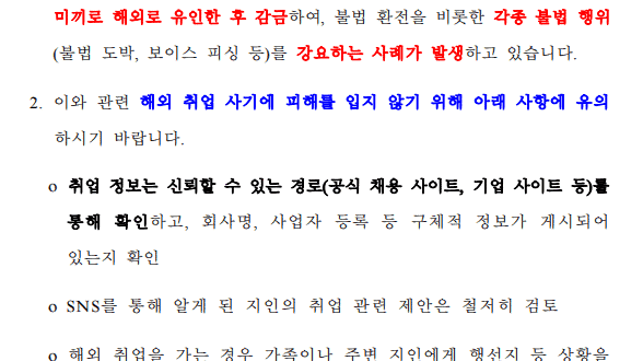 -“캄보디아 등 인근서 유인 후 감금·불법행위 강요 사례 발생”… 신분증 요구시 즉시 거절
