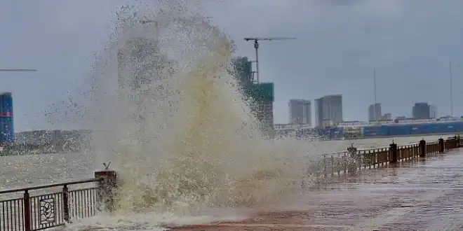 중부 다낭(Da Nang)에서 태풍 펑선(Fengshen) 접근으로 최고 6m 높이의 파도가 한강(Han River) 제방을 강타해 누으엣(Nhu Nguyet)거리가 침수되고 인도가 파괴됐다고 VnExpress지가 21일 보도했다.