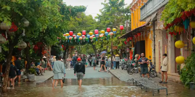 태풍 펑선(Fengshen)의 영향으로 베트남 호이안(Hoi An) 구시가지가 무릎 높이까지 침수됐지만, 관광객들은 여유롭게 관광을 이어가고 있다고 23일 Vnexpress지가 보도했다.