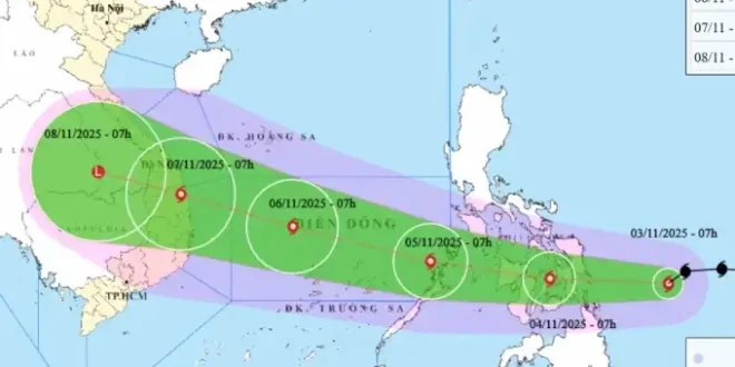 11월 5∼6일 태풍이 남중국해 중부로 진입하면 다낭(Da Nang)∼칸호아(Khanh Hoa) 앞바다 풍속이 12∼14등급, 순간 최대 풍속 17등급, 파고 8∼10m로 증가할 것으로 예상된다. 이 위험 지역에서 운항하는 모든 선박과 구조물이 영향을 받을 가능성이 있다.