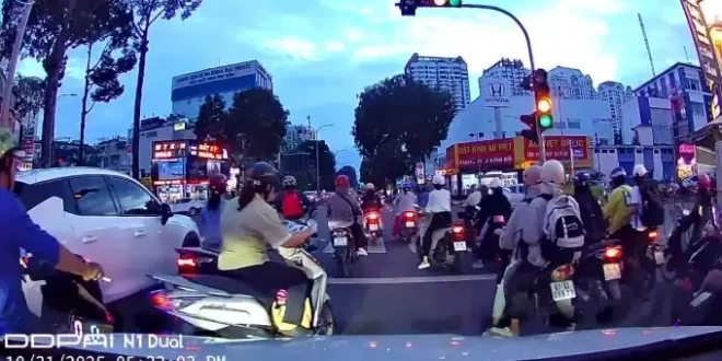 10월 31일 오후 호찌민시 쩐푸(Trần Phú)구 디엔홍(Diện Hồng)구에서 적색신호를 기다리던 한 차량의 블랙박스에 신호등이 녹색으로 바뀐 뒤 약 3초 만에 다시 적색으로 돌아가는 장면이 포착됐다.