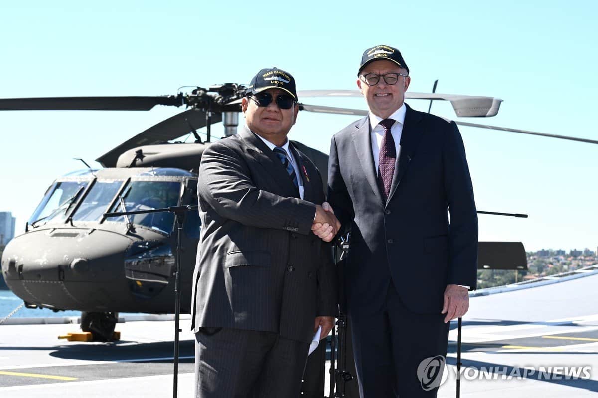 호주 국빈 방문에 나선 프라보워 대통령과 앨버니지 총리는 이날 시드니의 호주 해군 기지를 방문한 자리에서 “호주와 인도네시아 정부는 공동 안보에 관한 새로운 양자 조약 협상을 실질적으로 마무리했다”면서 이같이 발표했다.