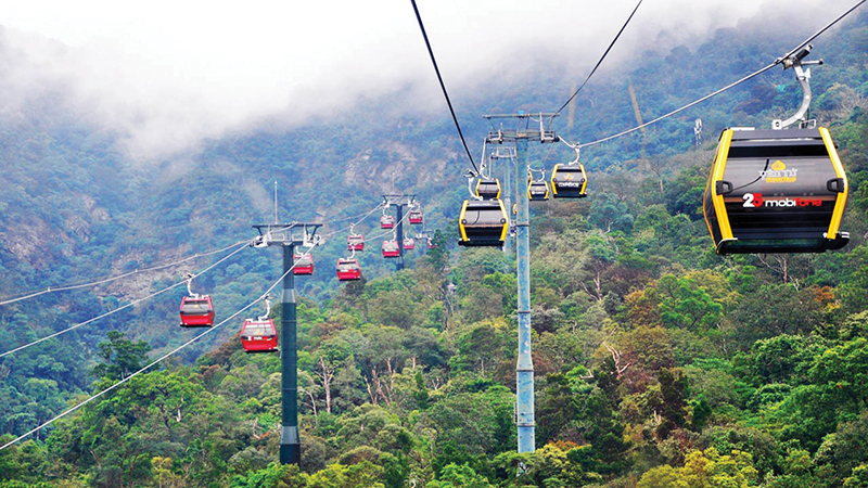 좀 더 편하게 오르고 싶다면 케이블카를 이용할 수 있다. 2개 구간으로 나뉘어 있으며, 1구간은 지어언 파고다(Giải Oan Pagoda)에서 화옌 파고다(Hoa Yên Pagoda)까지, 2구간은 멋마이 파고다(Một Mái Pagoda) 근처에서 안끼싱 동상(An Kỳ Sinh Statue) 근처까지 운행한다.