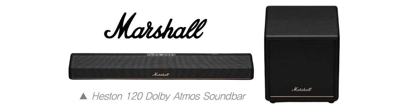 영국 마샬(Marshall)의 헤스톤 120 돌비 애트모스 사운드바(Heston 120 Dolby Atmos Soundbar)는 기타 앰프 디자인을 그대로 살린 독특한 외관으로 주목받았다. 금도금 볼륨 노브는 실용성과 상징성을 동시에 갖췄다. 5.1.2채널 구성은 올인원 사운드바로서는 강력한 베이스를 제공하며, 돌비 애트모스(Dolby Atmos)와 DTS:X를 모두 지원한다.