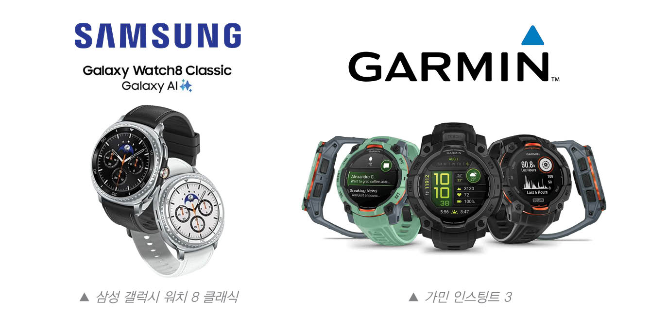 삼성 갤럭시 워치8 클래식(Galaxy Watch 8 Classic)은 스마트워치에 드디어 스타일을 입혔다는 평가를 받았다. 회전하는 클래식 워치 풍 베젤은 아날로그 시계의 감성을 살리면서도, 건강 및 수면 추적 기능은 최상급이다. 특히 무료로 제공되는 삼성의 건강 앱은 경쟁사 대비 큰 장점이다.