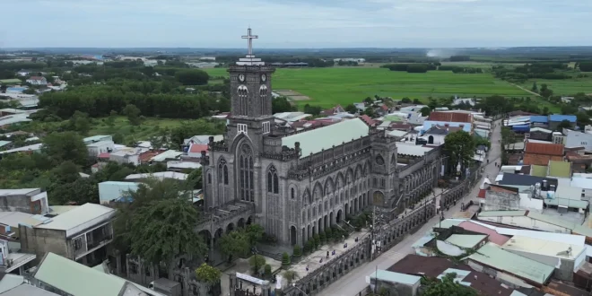 동빈 본당은 베트남 동나이 성의 호나이 동에 위치해 있으며, 기존에는 호나이 3 사회와 트랑본 구에 속했다. 이 성당은 동나이 지역에서 마그마석으로 전면 건립된 유일한 성당이다.