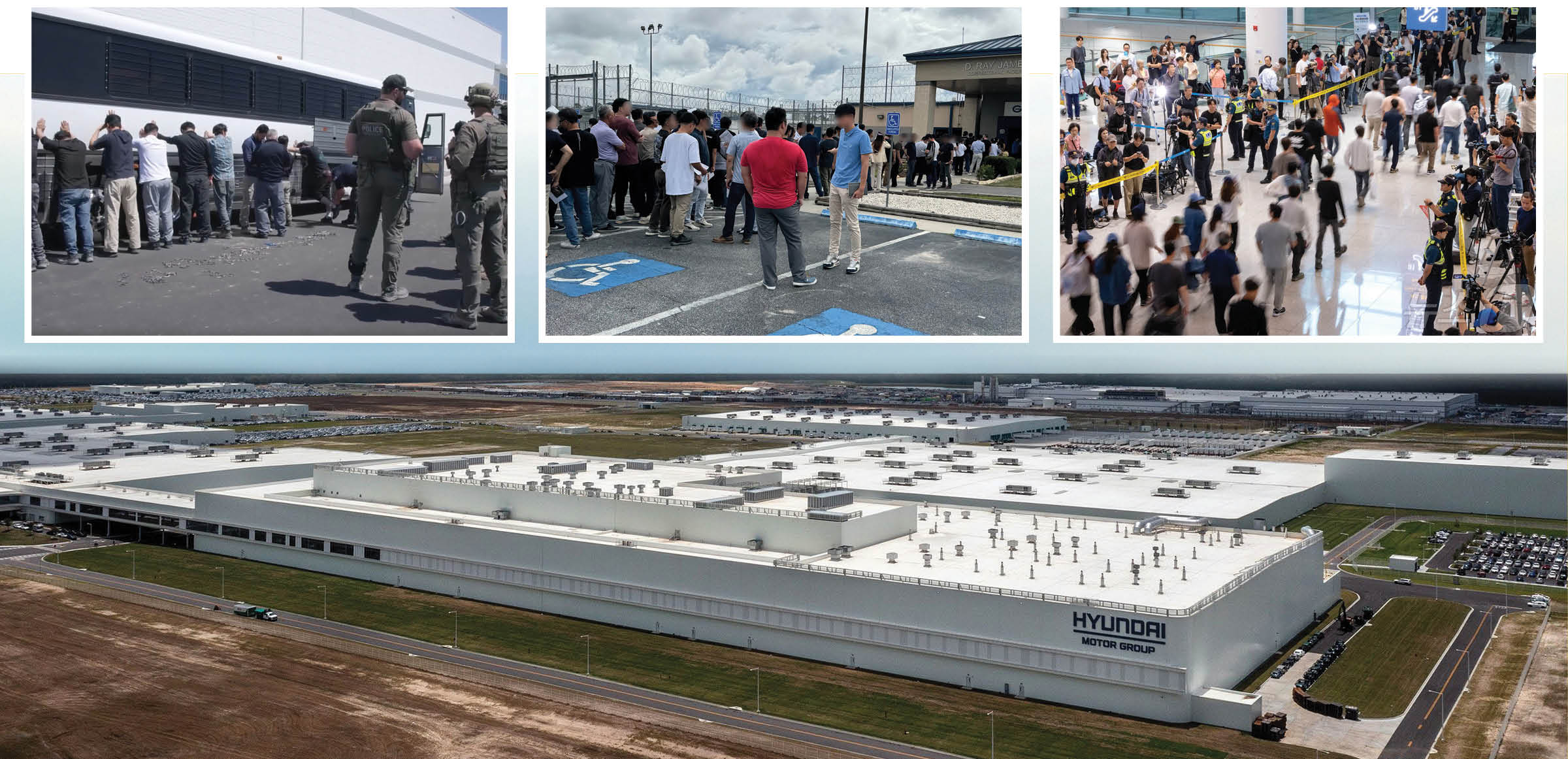 9월 4일(현지시간) 미국 이민당국은 조지아주 엘러벨의 현대차그룹-LG에너지솔루션 합작 배터리 공장(HL-GA) 건설 현장에서 불법체류자 단속을 벌여 한국인 317명을 포함해 475명을 체포했다.