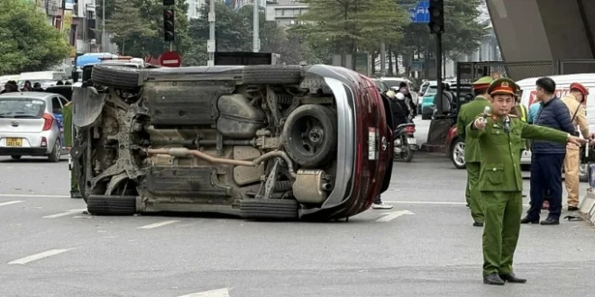 동다(Dong Da) 구역 구간에 이르렀을 때 그는 같은 방향으로 주행 중이던 전기차를 들이받은 뒤 계속 진행해 응아뚜서(Nga Tu So) 교차로 적신호에 정차해 있던 4인승 승용차 측면을 충돌했다.
