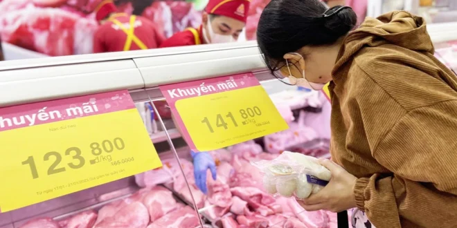 12월 26일, H.H 회사는 돼지고기의 판매 가격을 품목에 따라 3,000동(3,000 VND)에서 6,000동(6,000 VND) 인상했다고 전했다. 특히 갈비와 등심이 각각 5,700동(5,700 VND) 상승하여 168,600동(168,600 VND)과 160,000동(160,000 VND)으로 조정되었으며, 목살과 대패삼겹살은 각각 3,000동(3,000 VND) 올라 113,000동(113,000 VND)과 123,000동(123,000 VND)에 판매되고 있다. 지방도 2,500동(2,500 VND) 상승하여 77,000동(77,000 VND)이다. Thanh Niên의 취재에 따르면, 전통 시장에서도 돼지고기 가격 상승세가 나타나고 있다.