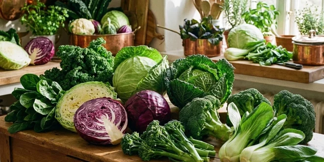 채소인 배추류에는 다양한 종류가 있으며, 이 중 대표적으로 브로콜리(브로콜리), 꽃양배추, 양배추, 청경채, 신선초, 다시마, 케일, 시금치 등이다.
