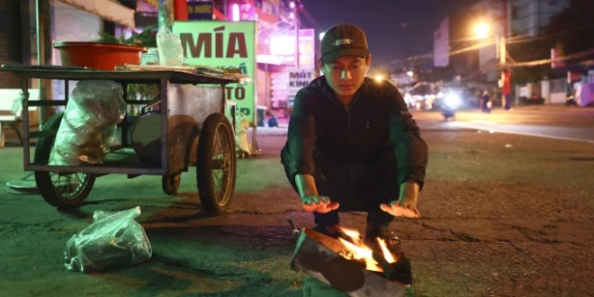 1월 10일 오전 5시경, 도 쑤언 홉 거리(Do Xuan Hop Street) 인근 인도에서 응우옌 반 께(Quach Hoang Kha, 24세)는 음식을 판매하기 위해 준비하면서 자신을 따뜻하게 하기 위해 불을 피웠다. 그는 “호찌민에서 여러 해를 지냈지만 이렇게 추운 적은 없다”고 말했다.