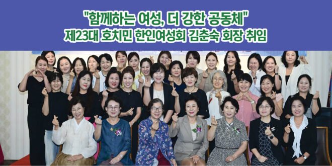 지난 1월 5일 오전 11시, 호치민시 7군 드마리스에서 열린 제23대 회장 이취임식에서 김춘숙 신임 회장이 공식 취임하며 새로운 출발을 알렸다.