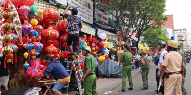 16일 TP.HCM이 도시 질서 회복을 촉구했으나, 하이 뚜엉란 엉(Hải Thượng Lãn Ông) 거리의 보행로는 한층 더 정돈이 되었다. 사전 조사에 따르면, 여러 상점들이 비닐봉지, 등불, 대나무 조각 등 다양한 상품으로 보행로를 점유하고 있었고, 심지어 직원들이 도로로 나와 고객을 유도하기도 했다. 예를 들어, 1월 13일 오후, 경찰과 보안 요원들이 순찰을 하고 있었음에도 불구하고 상점들은 여전히 공개적으로 상품을 판매하고 있었고, 하이 뚜엉란 엉(Hải Thượng Lãn Ông)과 빈 타이(Bình Tây) 구역 경계의 짱 쯔(Trang Tử) 도로 역시 심각한 점유 문제를 겪고 있다.