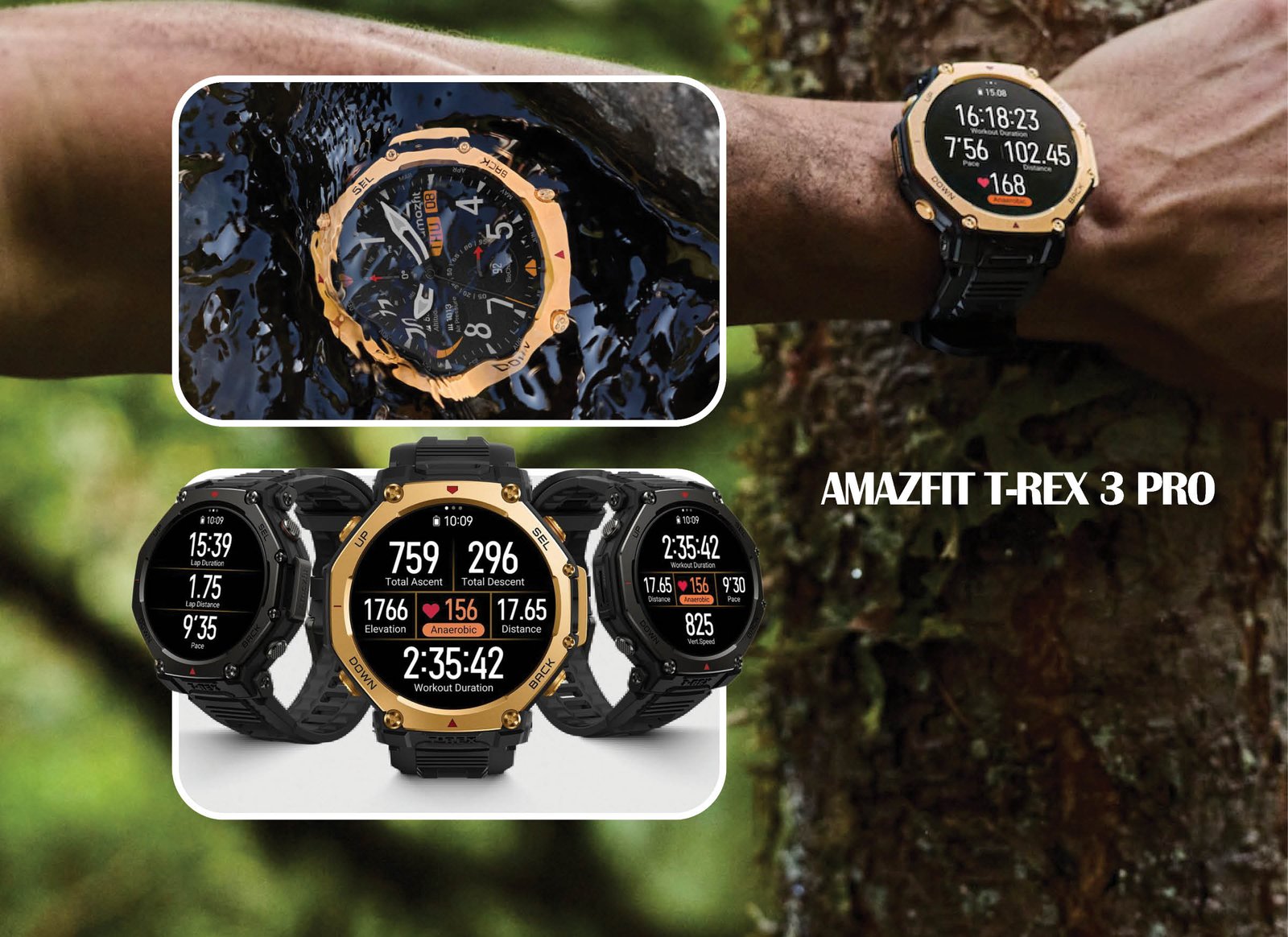 어메이즈핏의 프리미엄 아웃도어 스마트워치인 T-Rex 3 프로는 그레이드5 티타늄 베젤과 사파이어 글라스를 채용해 극한의 내구성을 자랑한다.