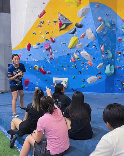 준비물은 간단했다. 작은 가방에 물물 한 병과 핸드폰만 넣고 갔다. 혼자 가는 거라 긴장됐고, 그래서인지 사진도 거의 찍지 못했다. 체험 강습은 매주 월·수·금 오전 11시~오후 1시, 화·목 오후 7시~9시, 토요일 오후 4시~6시에 진행된다. 12세 이상 참여 가능하며, 비용은 1인 50만 동(약 2만 6,500원). 2시간 동안 리드 클라이밍(Lead Climbing)과 볼더링(Bouldering) 모두 체험할 수 있다. 웹사이트에서 구글 폼으로 신청하면 베트남 메신저 잘로(Zalo)로 연락이 온다. 하루 정도 걸렸고, 정확한 날짜를 정한 뒤 하네스와 양말을 제공받는다는 안내를 들었다. 당일에도 확인 메시지가 왔다.