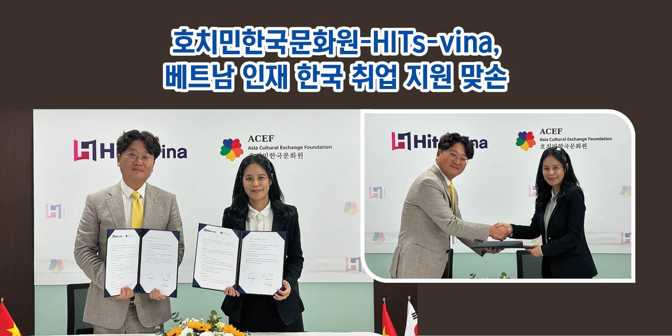 아시아문화교류재단(ACEF) 호치민한국문화원이 손해사정 전문기업 HITs-vina(히츠비나)와 베트남 우수 인재의 한국 기업 취업을 체계적으로 지원하기 위한 업무협약(MOU)을 체결했다.