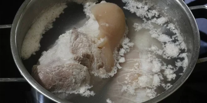 그러나 이 거품 층에는 보통 먼지, 모래, 남은 털이 섞여 육수가 탁해지고 미관상 좋지 않으며 위생적이지 못하다. 요리를 더 맛있게 만들려면 주부들이 깨끗한 고기를 선택하고 꼼꼼히 전처리한 뒤 끓는 물에 한 번 데쳐 불순물을 제거해야 한다.