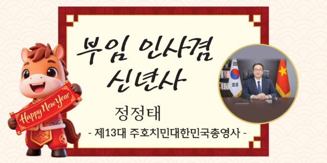 2026년 병오년(丙午年) 새해를 맞아 호치민 동포 여러분께 진심 어린 새해 인사를 올립니다. 붉은 말의 힘찬 기운으로 도약과 희망이 함께 하는 한 해가 되기를 기원하며, 낯선 타국 땅에서 각자의 삶의 터전을 일구어 오신 동포 여러분의 노고에 깊은 존경의 마음을 전합니다.