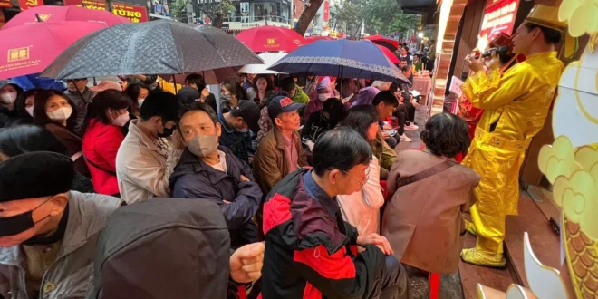 음력 1월 10일인 ‘재신(財神·Than Tai)의 날’을 맞아 베트남 전역의 금방에는 비가 내리는 궂은 날씨 속에서도 금을 사려는 시민들로 장사진을 이뤘다.