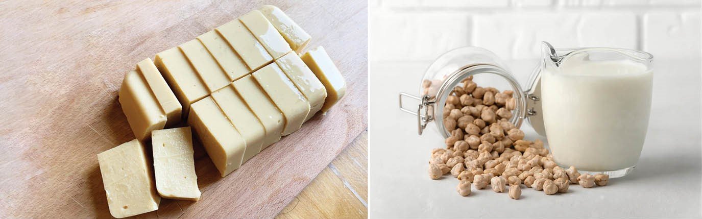 다른 콩들과 마찬가지로 삶은 병아리콩을 물과 함께 갈아서 콩국과 두유도 만들 수 있다. 일종의 묵을 만들어 먹을 수도 있는데, 콩으로 만들기 때문에 두부라고 불리는 경우가 많지만 단백질이 아닌 녹말을 굳혀서 만들므로 묵에 더 가깝다.