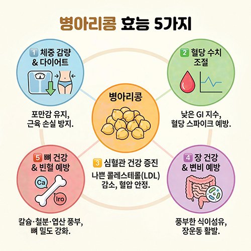 병아리콩은 7500년의 역사가 증명하듯 인류에게 중요한 영양 공급원이었고, 현대 과학이 그 효능을 입증하고 있다. 혈당 조절, 다이어트, 항산화, 심혈관 건강 등 다양한 건강 효과를 가진 명실상부한 슈퍼푸드다. 하지만 아무리 좋은 식품도 사람에 따라 다르게 작용할 수 있다. 특히 고혈압약을 복용하는 환자, 통풍 환자, 신장 결석 병력이 있는 사람, 콩 알레르기가 있는 사람은 섭취를 피하거나 의사와 상담 후 소량만 섭취하는 것이 안전하다.