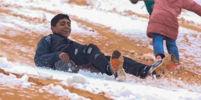 세계에서 가장 뜨거운 사막인 사하라의 상징, 오렌지빛 모래 언덕이 새하얀 눈 이불을 덮었다. 14일 외신과 현지 소식통에 따르면, 알제리의 사막 도시 아인 세프라(Aïn Séfra)의 기온이 영하권으로 떨어지면서 광활한 사구 지대가 하얀 눈으로 뒤덮이는 기이한 현상이 발생했다.